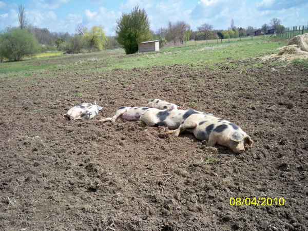 bepflanzt wurden. Die Schweine wühlen den gesamten